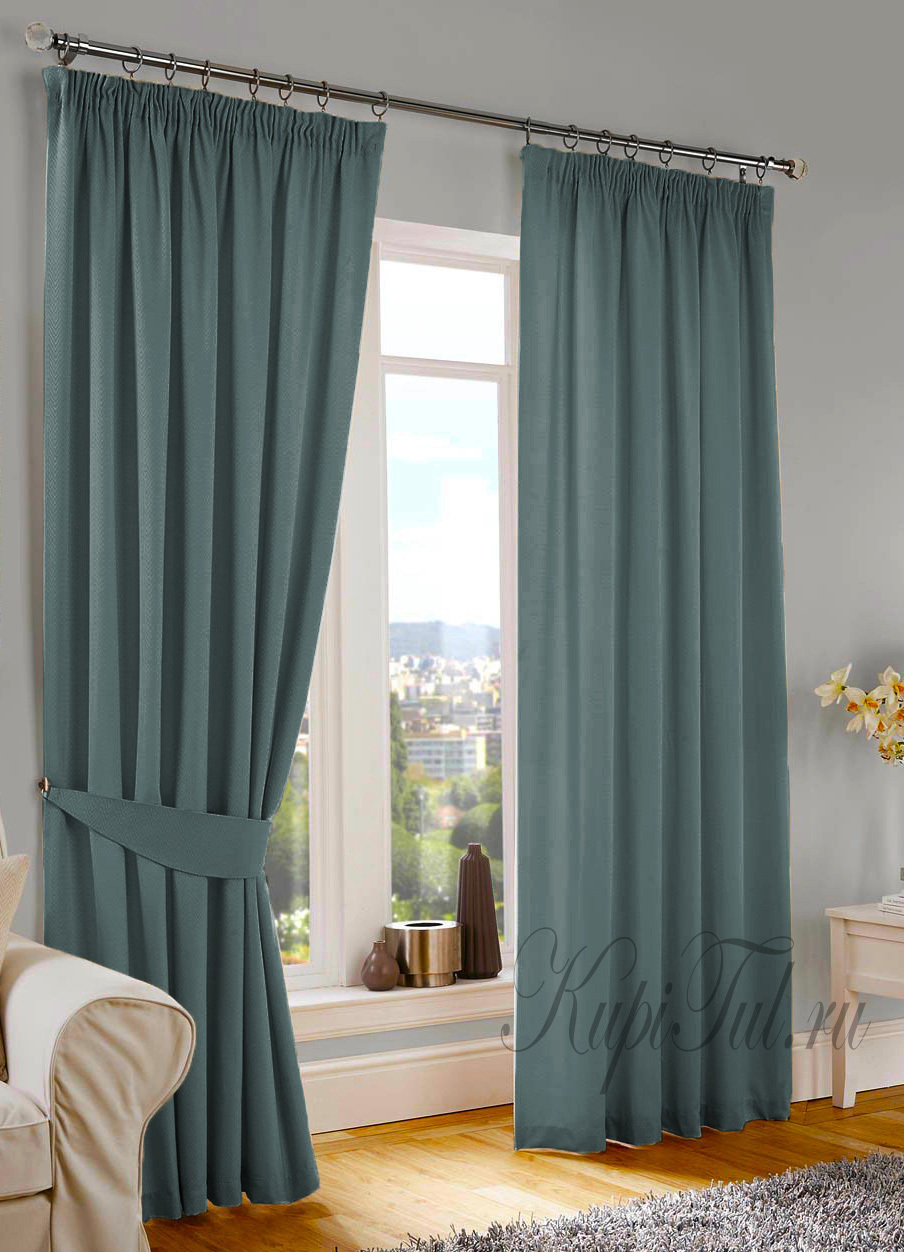 Шторы из мягкой плотной ткани Kadife темно-бирюзового цвета с ворсистой и мягкой поверхностью из микро-волокон, напоминающей кожицу спелого персика (стриженный бархат). Легко сочетается как с однотонным тюлем, так и с тюлем с рисунком или с вышивкой. Одна из самых востребованных тканей дизайнеров штор.