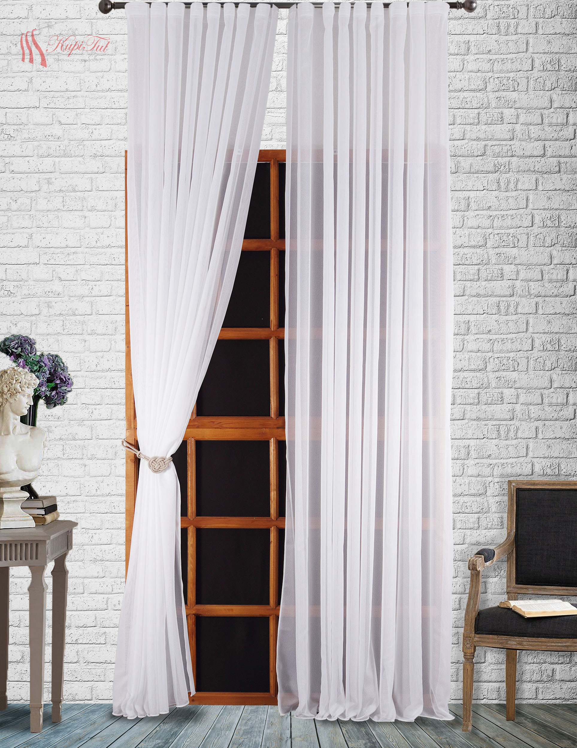 Данный тюль можно использовать как самостоятельный оконный декор или в сочетании с портьерами, шторами блэкаут, римскими шторами и рулонными шторами.