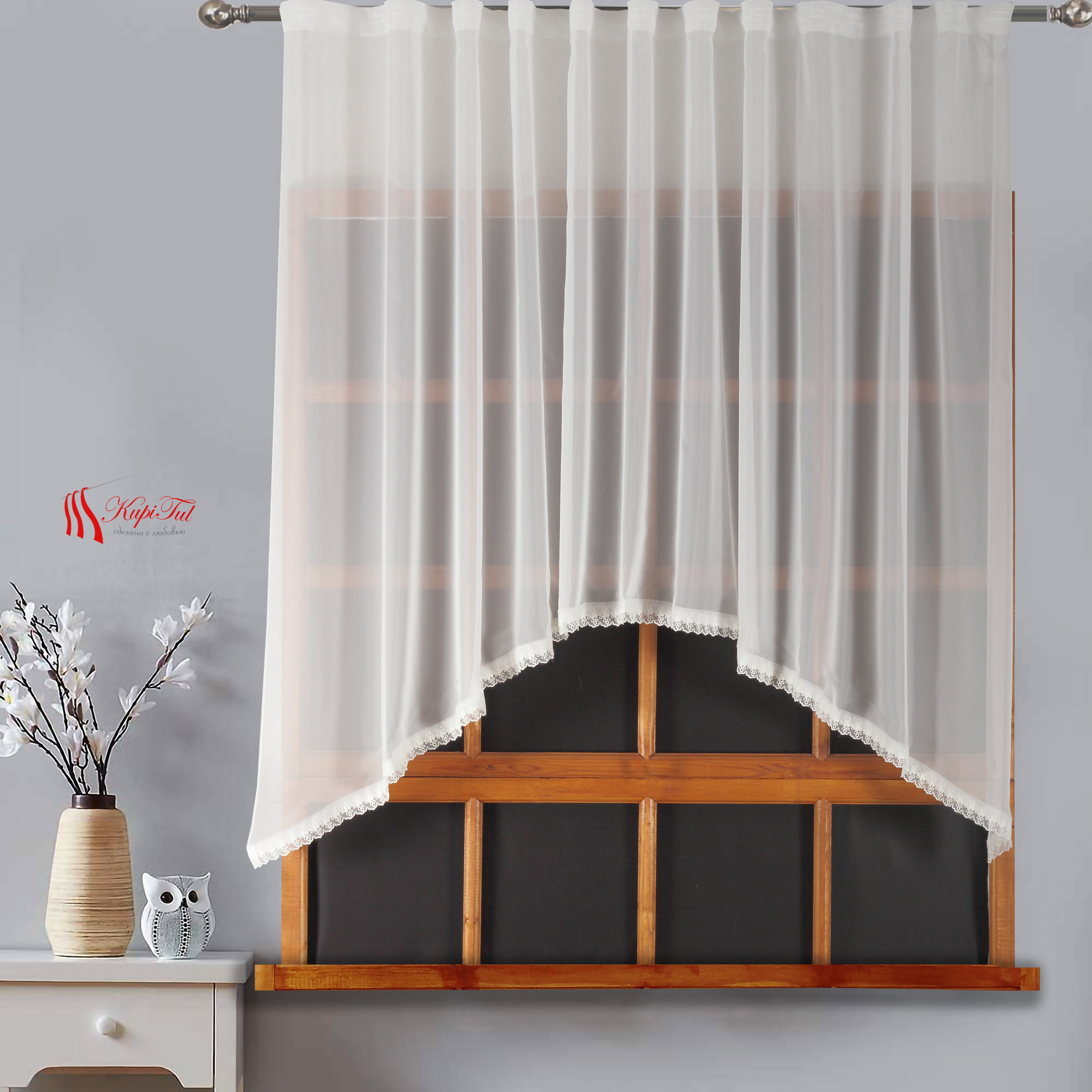 Так же этот тюль великолепно украсит столовую.